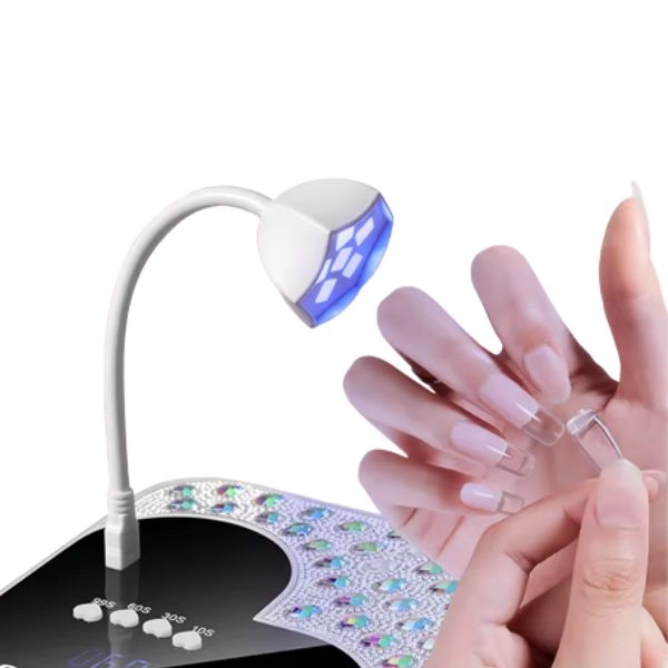 UV/LED svetilka za nohte, prekrita z okrasnimi kamni, LCD zaslon v obliki srca.